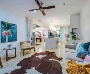Came about during a casual drive around the streets looking at Real Estate, situated on a double block it was my first hand experience at subdividing the land, on selling a block and building on lot 10. The interiors were inspired by the seaside location, lending towards a neutral palette, and a photo found at the Sandgate historical museum featured as wallpaper in the formal lounge. In the eyes of my children this is still considered to be their favourite home.